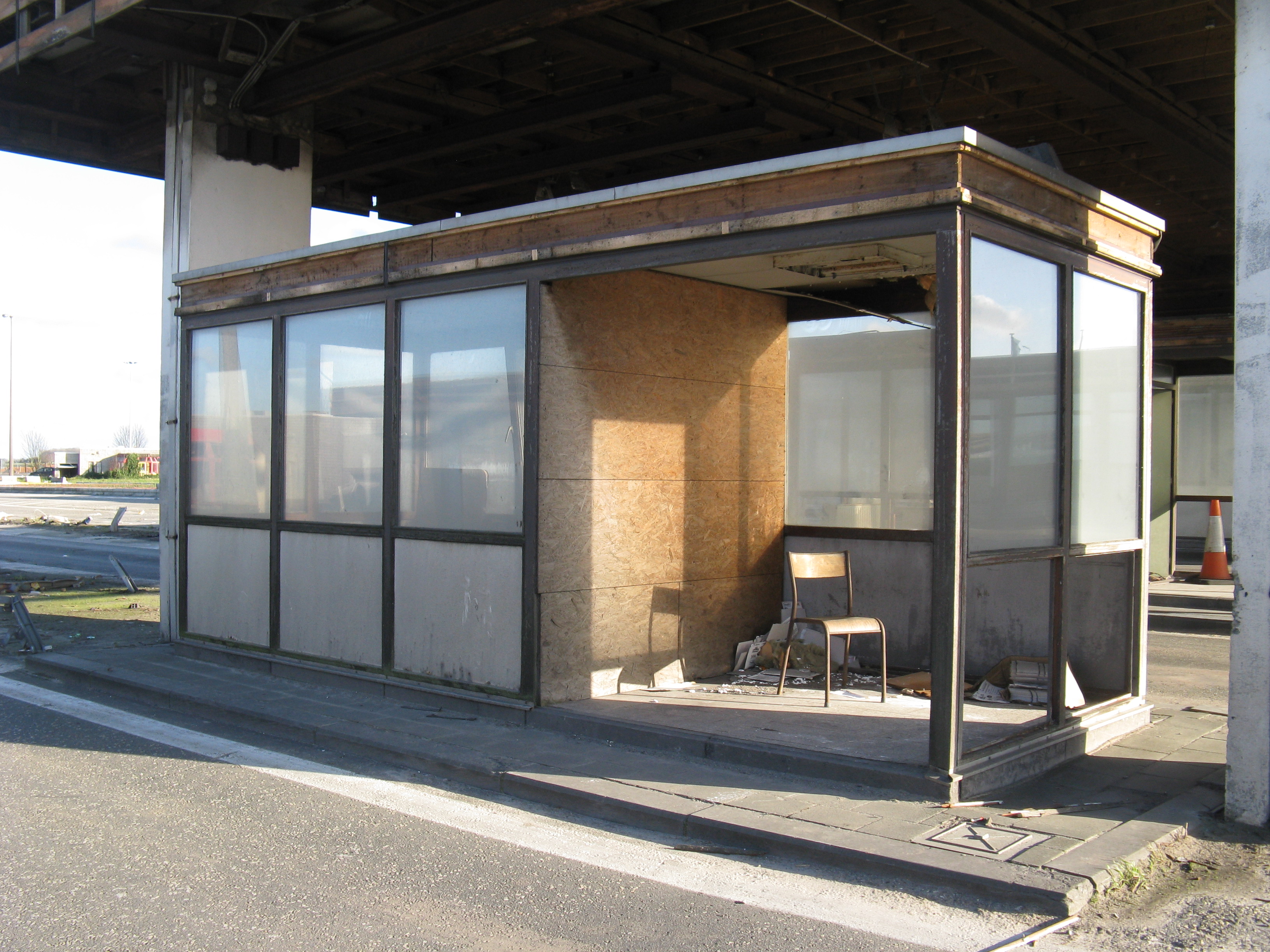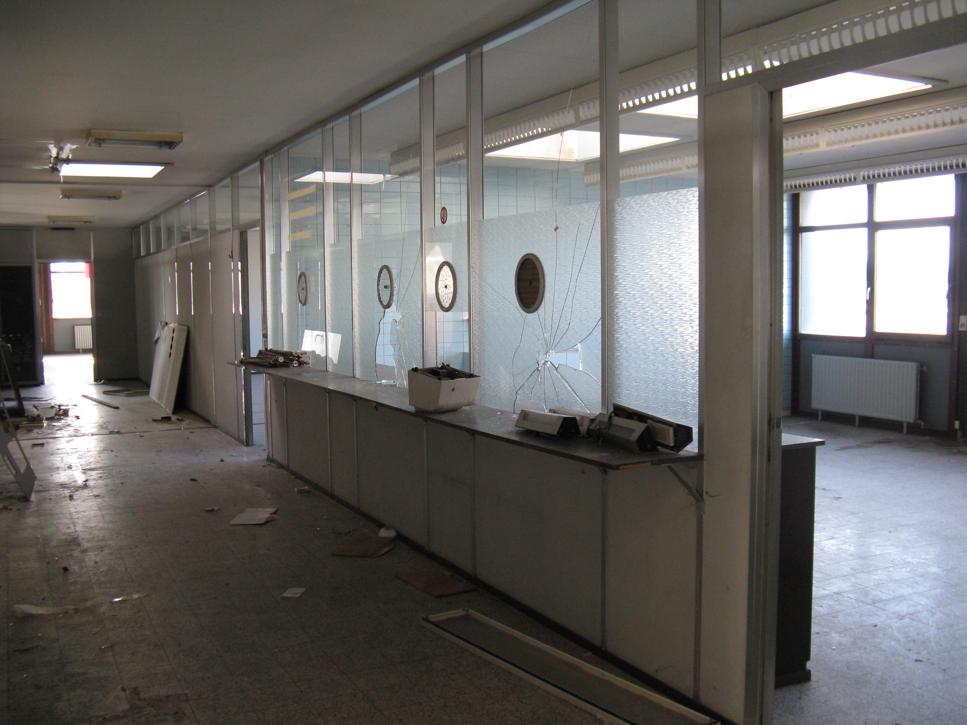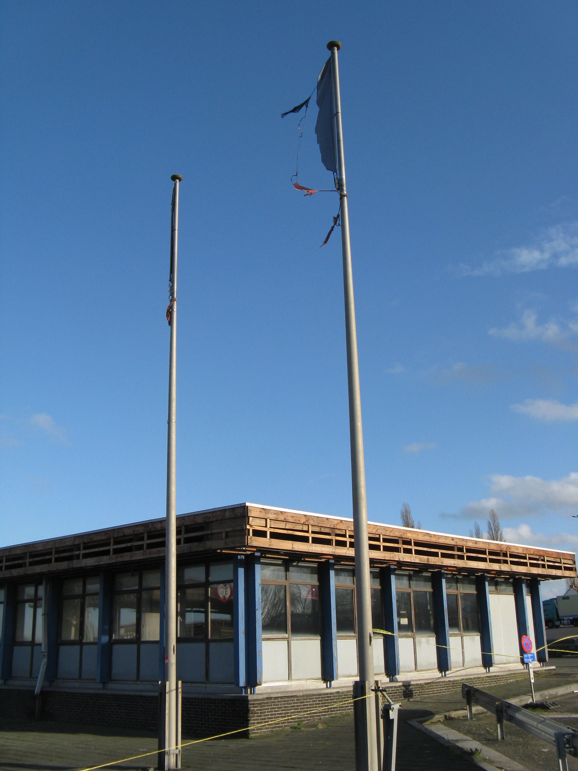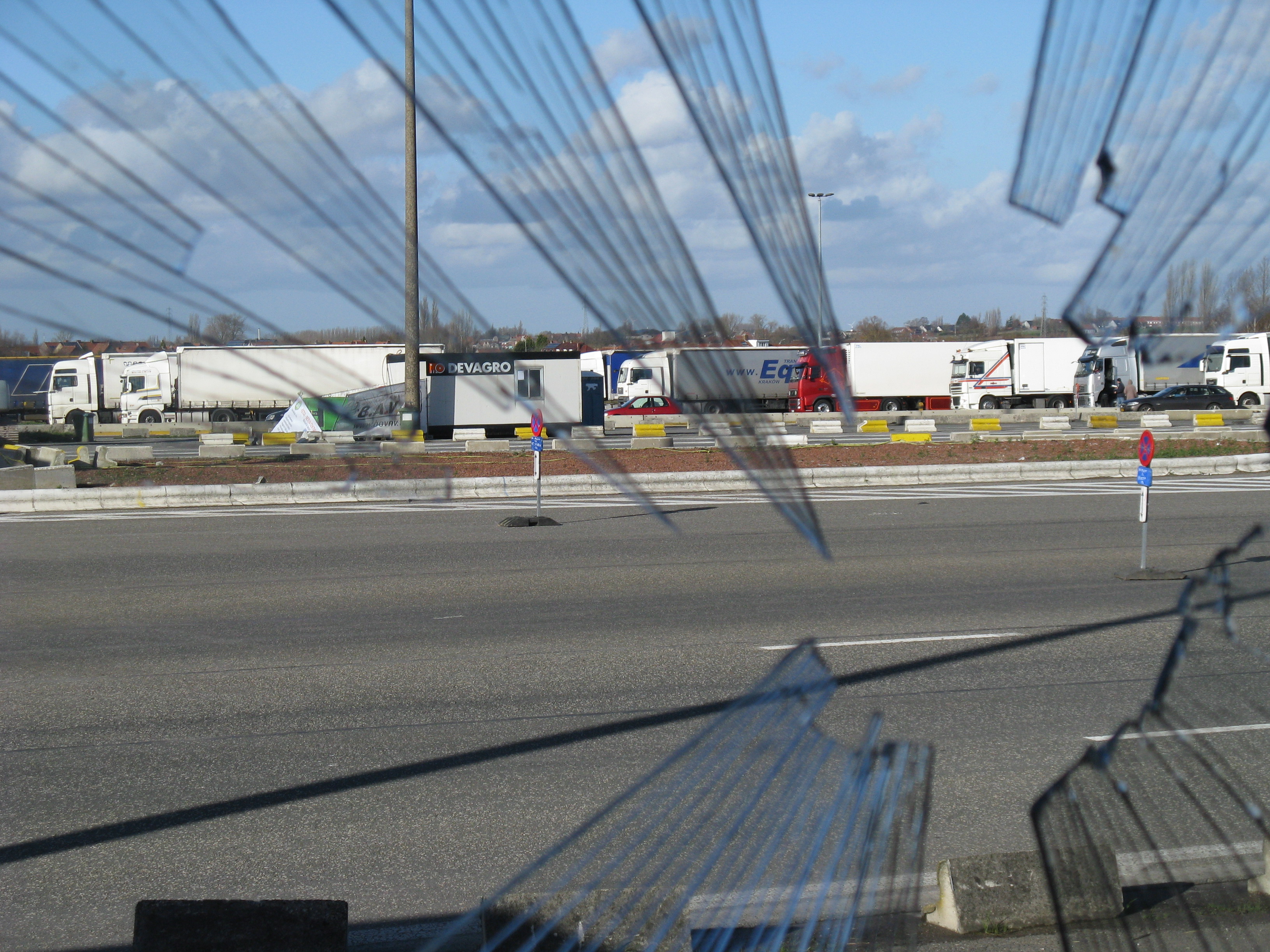 "Following the gradual implementation after 1995 of the Schengen Agreement throughout most of the European Union, systematic border checks and patrols disappeared to allow for the free movement of people between different countries. As a consequence, most border posts were quickly removed. This example is at Rekkem, about 10 miles north of the French city of Lille on the main route from Paris to northern Europe and is located precisely on the France / Belgium border (although technically, the buildings are on Belgian soil). In its day, it was reportedly the largest example of its kind in Europe and had a variety of services for both staff and travellers—including a couple of cells. After lying abandoned for over twenty years, work finally began in February 2014 to destroy it within a month. Spot checks by Customs can still take place however, as on the day the pictures were taken."