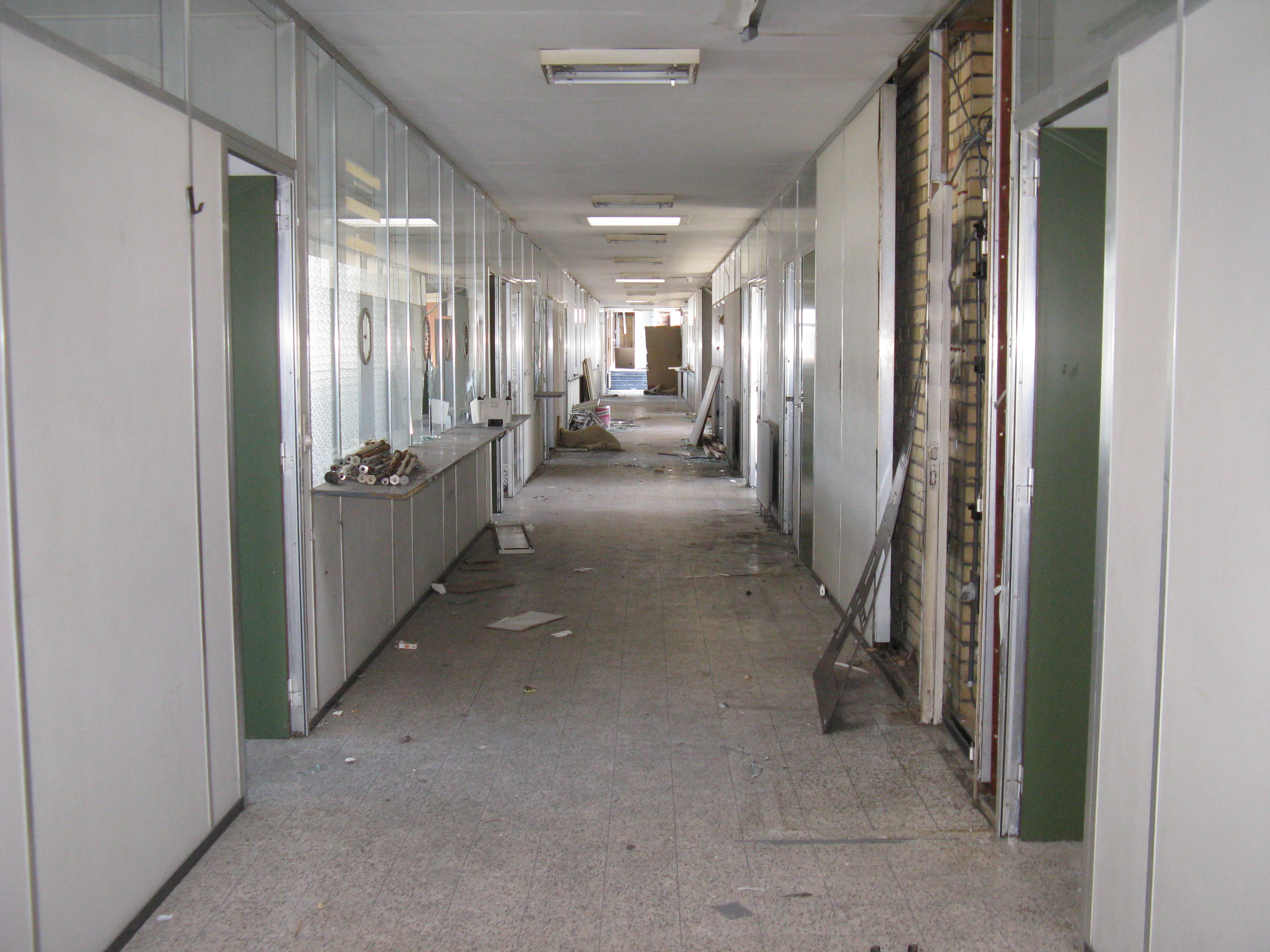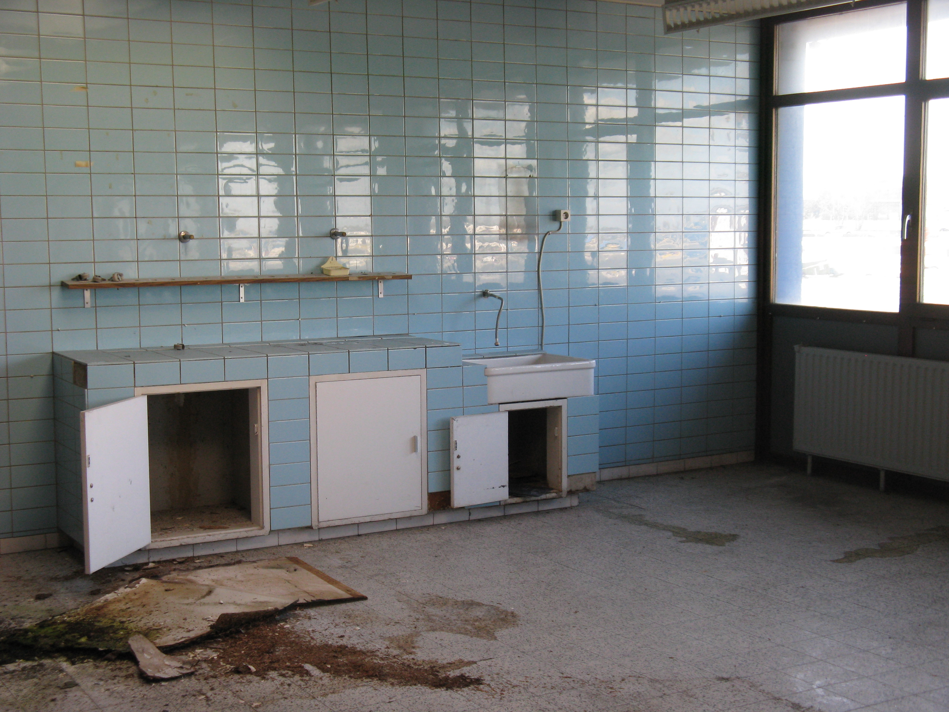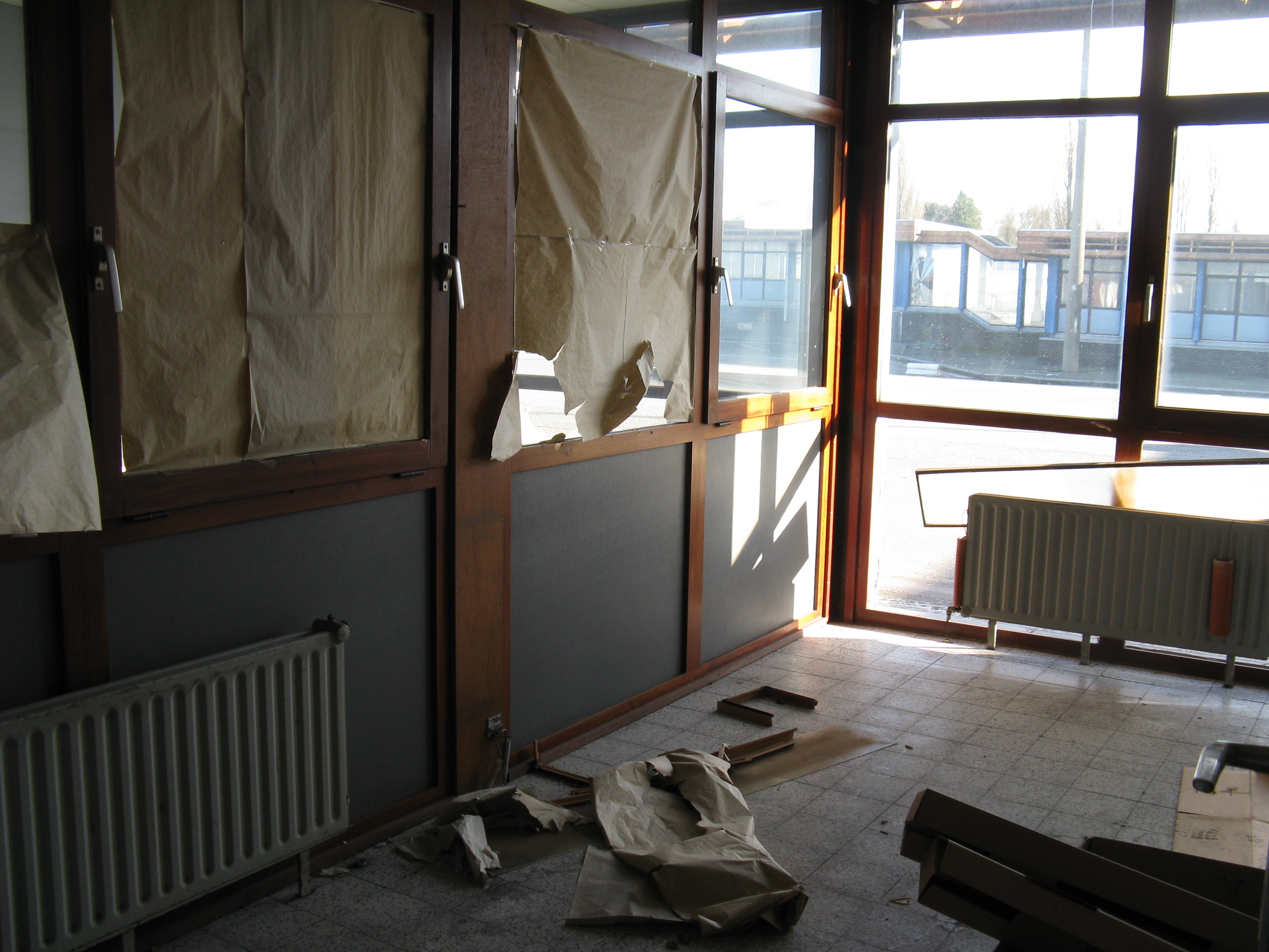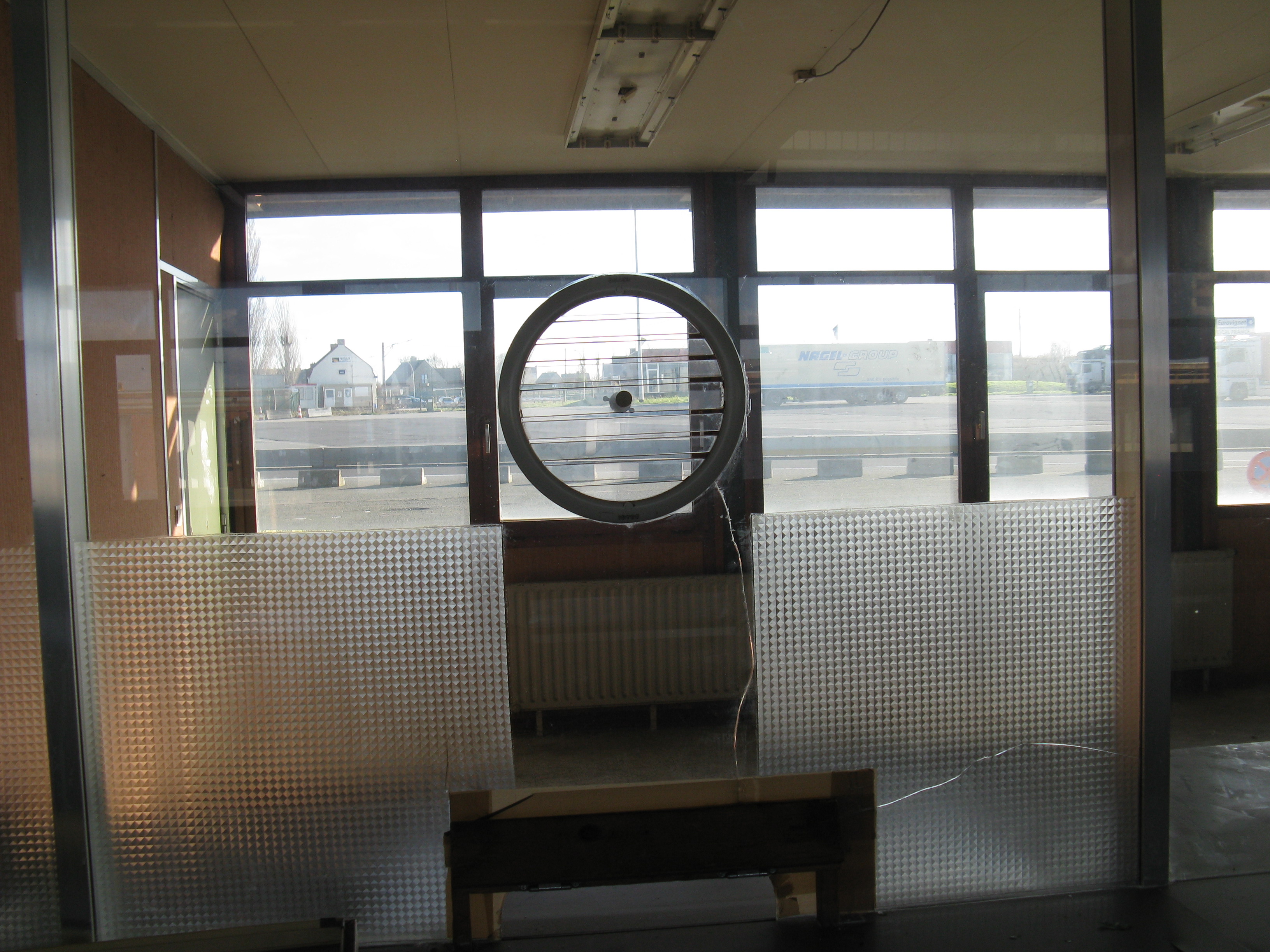 "Following the gradual implementation after 1995 of the Schengen Agreement throughout most of the European Union, systematic border checks and patrols disappeared to allow for the free movement of people between different countries. As a consequence, most border posts were quickly removed. This example is at Rekkem, about 10 miles north of the French city of Lille on the main route from Paris to northern Europe and is located precisely on the France / Belgium border (although technically, the buildings are on Belgian soil). In its day, it was reportedly the largest example of its kind in Europe and had a variety of services for both staff and travellers—including a couple of cells. After lying abandoned for over twenty years, work finally began in February 2014 to destroy it within a month. Spot checks by Customs can still take place however, as on the day the pictures were taken."