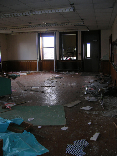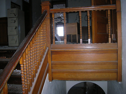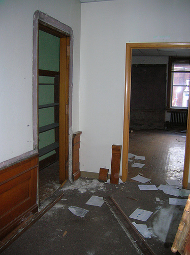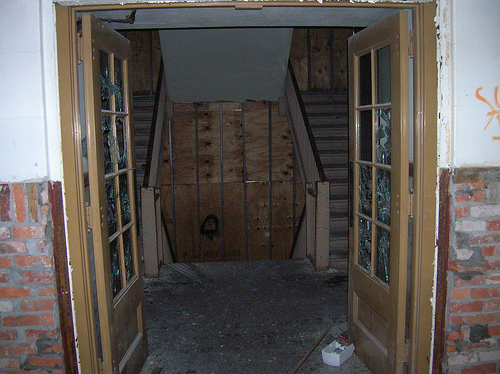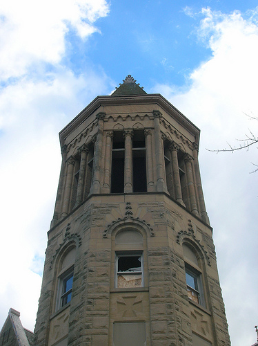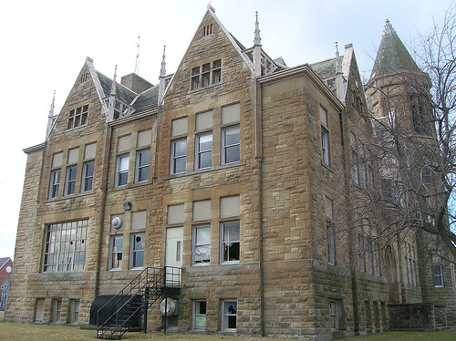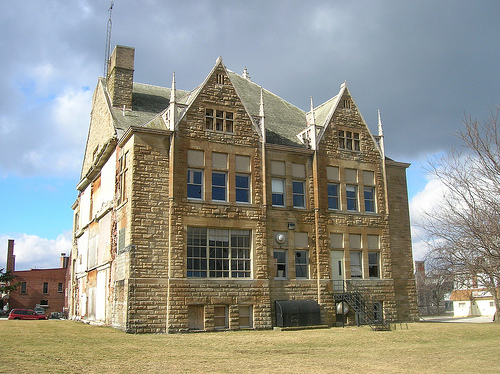 It is located on East Market Street in downtown Tiffin, Ohio, Seneca County just next to the county's court house which is also pending demolition. It is abandoned.