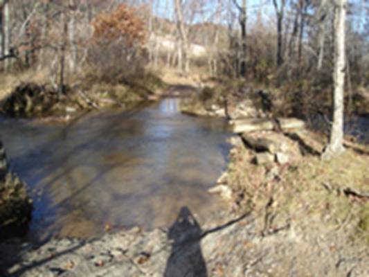 Now to get to the road that leads up to the cabin, you have to cross a creek.